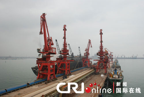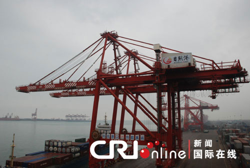國際在線消息(記者 張猛 吳曉虹):25日上午,第五屆中國網絡媒體山東行采訪團來到日照港。盡管全球性的金融危機尚未過去,但記者在現場看到,日照港仍是一片繁忙的景象,碼頭堆滿了來往的集裝箱,傳輸帶也在不停的工作,昔日的荒灘,已發展成為中國最年輕的大型現代化綜合性億噸港口。