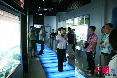 中國網8月23日泰安電:23日上午,中國網絡媒體山東行采訪團來到泰安規劃展廳參觀采訪,泰安規劃展廳以現代化手段全景展示了泰安全貌及美好的發展前景。