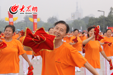8日上午,山東省暨濟南市“全民健身日”啟動儀式在濟南泉城廣場舉行,來自濟南各區市的近3000名群眾表演了健身秧歌、太極拂塵、抖空竹等豐富多彩的全民健身項目,十一運圣火火種在泰山采集的場景也在廣場上重現。
