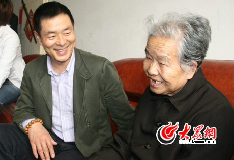 濮存昕和老人愉快交談