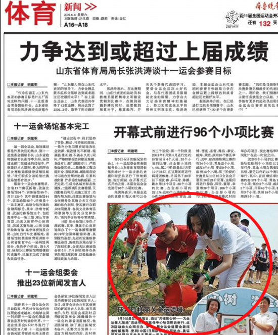 齊魯晚報:環境日杜麗為全運添綠