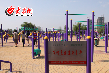百里濱河健身長廊是臨沂市應群眾健身需求,立足豐富的水資源優勢,沿穿城而過的沂河、祊河等河段建設的,整個投資2000多萬元。健身長廊沿濱河大道建成了50處群眾健身娛樂場所,根據不同地段的不同特點,規劃出水上運動項目區、沙灘運動項目區 、球類運動項目區、濕地運動項目區、休閑運動項目區等5個功能項目區。