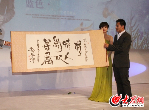 婚禮儀式進行到最后,主持人向賓客們宣布:“來自北京的一位姓郭的大腕贈上一份禮物。”大家馬上對這名神秘人物議論紛紛:“晶晶?是郭晶晶嗎?”主持人賣了個關(guān)子:“他贈上一幅字,上書:有情人終成眷屬。落款是:郭德綱。”眾賓客馬上了然,有感于郭德綱書法底蘊不錯的同時,也因郭晶晶未在婚禮現(xiàn)身而遺憾。