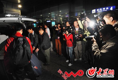 大眾網-聯通3G聯合報道濟南訊(記者 李冉 馮煒程 劉國棟 趙爾印)21日深夜,濟南遙墻機場上演驚心動魄的追逐大戰,交戰雙方是來自全國各地的不下30名記者和趕來濟南參加全運會的飛人劉翔,最終經過數小時的艱苦而耐心的等待,眾記者成功拍到了劉翔……的行李。而劉翔本人在晚上10點07分左右,具信通過先乘出租車半路轉乘專車的方式,逃離記者的追逐,不過,晚上10點53左右,在飛人入住全運村22號樓的時候,他還是被記者成功拍到。