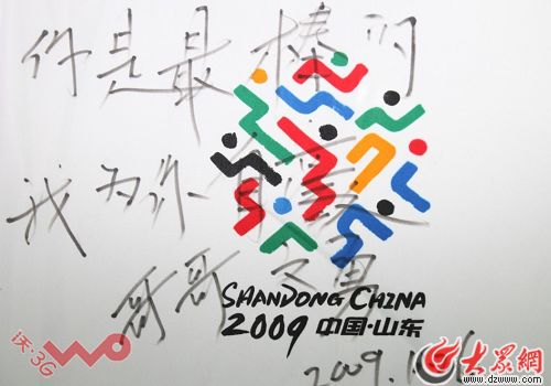 教練張志奇為大眾網留言:“祝大眾網如山東十一運一樣輝煌”