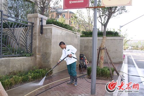 物業人員清洗地面