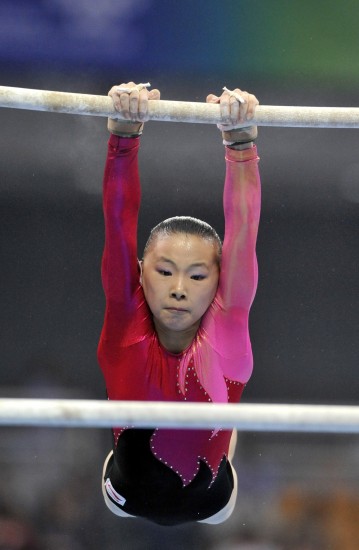 高低杠比賽中,第一個上場的是浙江小將何寧。由于從杠上跌落一次,最后落地時又險些跪地,何寧僅得到12.300的分?jǐn)?shù)。接下來上場的是上海隊譚思欣,瀟灑利落的做完整套動作,譚思欣拿到14.275分。第三個出場的是在昨天剛剛拿到女子全能銀牌的楊伊琳,盡管在落地時出現(xiàn)了一點失誤,但漂亮舒展的動作使她仍拿到14.700的高分。接下來出場的分別是貴州的楊紅茜和廣東的吳柳芳,憑借穩(wěn)定的發(fā)揮,她們分別拿到14.075分和14.650分。浙江隊江鈺源第六個出場,穩(wěn)穩(wěn)的落地獲得滿堂喝彩,贏得14.275分。第七個出場的是北京奧運高低杠項目冠軍何可欣。沉著穩(wěn)定的何可欣精彩的完成了自己的成套動作,結(jié)果她得到了15.950分,也是本場比賽中得分唯一超過15分的選手。最后一個上場的選手是上海隊的肖康君 ,她異常穩(wěn)定的完成了自己的成套,但是由于難度上的劣勢,無法與強手抗衡,最終得到了14.275分,和她的隊友譚思欣并列第四。最終,高低杠公主何可欣毫無懸念的獲得了高低杠比賽的金牌,而廣東選手楊伊琳和吳柳芳分獲二三名。