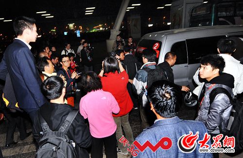 大眾網(wǎng)-聯(lián)通3G聯(lián)合報(bào)道濟(jì)南訊(記者 李冉 馮煒程 劉國(guó)棟 趙爾。21日深夜,濟(jì)南遙墻機(jī)場(chǎng)上演驚心動(dòng)魄的追逐大戰(zhàn),交戰(zhàn)雙方是來(lái)自全國(guó)各地的不下30名記者和趕來(lái)濟(jì)南參加全運(yùn)會(huì)的飛人劉翔,最終經(jīng)過(guò)數(shù)小時(shí)的艱苦而耐心的等待,眾記者成功拍到了劉翔……的行李。而劉翔本人在晚上10點(diǎn)07分左右,具信通過(guò)先乘出租車半路轉(zhuǎn)乘專車的方式,逃離記者的追逐,不過(guò),晚上10點(diǎn)53左右,在飛人入住全運(yùn)村22號(hào)樓的時(shí)候,他還是被記者成功拍到。