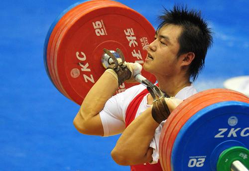 10月26日,山東隊選手楊哲在比賽中。當日,在第十一屆全運會舉重男子105公斤級比賽中,楊哲以402公斤的總成績獲得冠軍。 新華社記者王雷攝