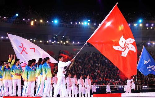 10月28日,第十一屆全國運動會閉幕式即將在山東濟南舉行。這是閉幕式開始前香港代表隊入場。新華社記者李鋼攝