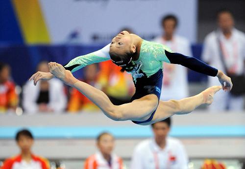 安徽隊選手鄧琳琳在自由體操比賽中。