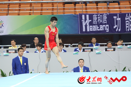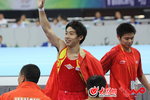 大眾網-山東聯通3G聯合報道(記者 明清 爾印 吳哲 新婷 洪棟)在今晚舉行的第十一屆全運會體操單項決賽中,第一場是男子單項自由操的決賽。9月20日晚上8點十分左右,男子自由操冠軍誕生,四川名將鄒凱以15.45分的超高分摘金,山東隊的黃玉國以15.325分屈居亞軍,第三名是廣東隊的梁富亮。