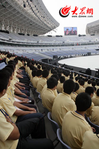 “每一個中國人都非常關注國慶閱兵式,咱們十一運開幕式參演人員也有這方面的要求,經過綜合考慮之后,我們決定把大家組織起來,一起觀看國慶閱兵式。”十一運組委會大型活動部的領導在接受采訪時這樣說,“大家通過電視觀看閱兵式,感受祖國的富強、社會的發展,這本身就是一次很好的受教育機會。有了榜樣,我們會把工作做得更好,讓十一運開幕式更加精彩。”