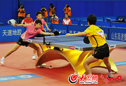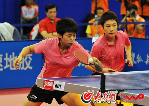 大眾網(wǎng)-聯(lián)通3G青島10月2日訊 (記者 吳哲 新婷 洪棟 攝影 湯臻)今晚,全運會乒乓球比賽在青島國信體育館進行最后一天的爭奪。在剛剛結(jié)束的女雙決賽中,遼寧的郭躍/侯曉旭以4-1擊敗湖北組合饒靜文/劉娟摘得乒乓球女雙項目的冠軍。