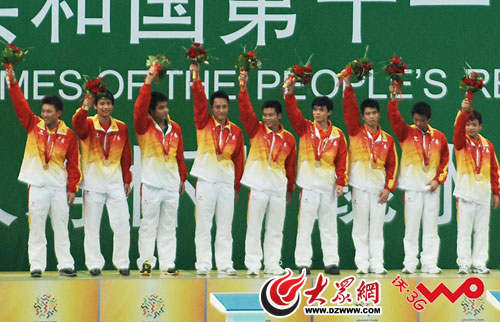 廣東隊選手在領獎臺上。