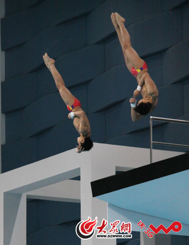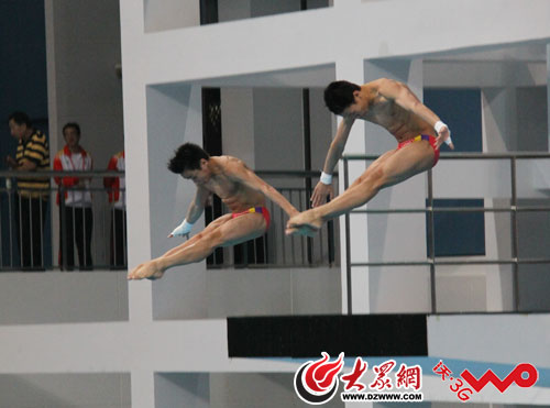 廣東選手張雁全和陳艾森在比賽中。
