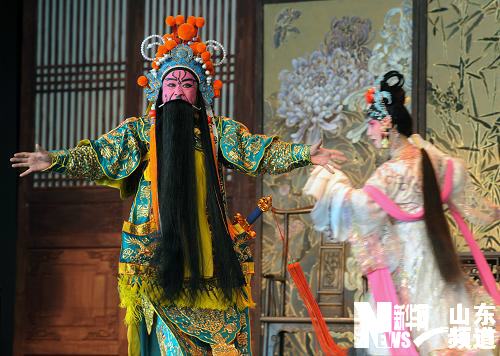 7月9日,來自山東淄博市五音戲劇院的演員在表演五音戲《王小趕腳》。