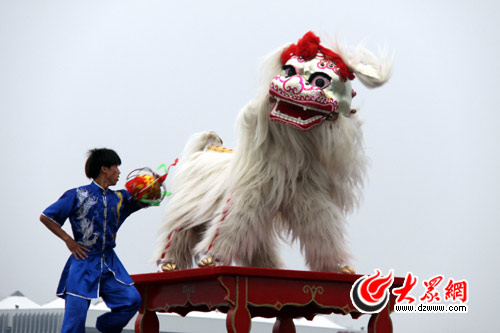 精彩的舞獅表演 記者 馮煒程 吳哲