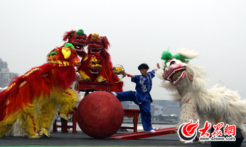 精彩的舞獅表演 記者 馮煒程 吳哲