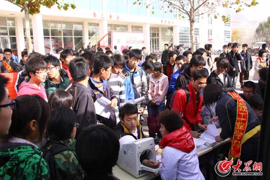 大眾網(wǎng)11月12日訊(記者 王靜 盛堃)因?yàn)橛袗郏@個(gè)季節(jié)不寒冷。今天上午,山東輕工業(yè)學(xué)院第三食堂門口人聲鼎沸,學(xué)子們的熱情和愛心 感染了整個(gè)校園。由大眾網(wǎng)發(fā)起,山東輕工業(yè)學(xué)院、山東省血液中心和濟(jì)南蒙牛乳業(yè)銷售有限公司共同參與的“用愛傳遞溫暖——大型校園愛心獻(xiàn)血活動(dòng)”在這里舉行,輕工業(yè)學(xué)院三百名師生奉獻(xiàn)了愛心。