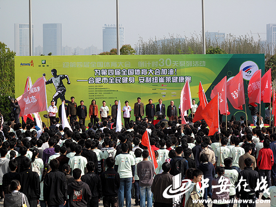在第四屆全國體育大會倒計時30天之際,今天上午,“2010安利紐崔萊健康跑”活動在合肥奧體中心鳴槍起跑。在健康跑的現場還設置了運動嘉年華廣場活動,與往年不同的是,此次嘉年華專門設立了三個“四體會”項目——毽球、拔河和高爾夫球,廣大市民可以在嘉年華中提前感受“四體會”的比賽項目。