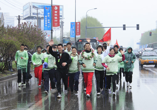 上午8時,健康跑活動在長春體育中心正式舉行。盡管天下起了小雨,但人們的健身熱情依然高漲,大家不約而同地拉起了歌,在歌聲、歡笑聲、熱烈的掌聲中,啟動儀式隆重開始。儀式上,市領導發表了重要講話,市體育局局長郭忠君向安利公司弭熙魁總監頒發了紀念牌,弭熙魁總監發表了簡短而有力的致辭,市長崔杰為健康跑鳴槍發令。在省市相關部門領導及推廣大使短道速滑世界冠軍馮凱的領跑下,15000余人的長跑隊伍從長春體育中心南門出發,途經自由大路、人民大街、解放大路、吉順街,最終回到長春體育中心南門,全程約為5.5公里,沿途設置飲水點。