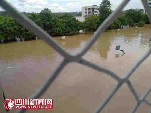 廣安中學被淹嚴重(圖為被淹的田徑場)。