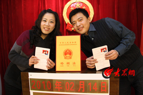 時間:2月14日上午  地點:濟南歷下區婚姻登記處  大眾網記者:馮煒程