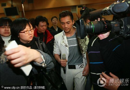 白色,幾乎是當年小虎隊當紅時期最官場選擇的著裝顏色,這一次,為了重溫記憶,小虎隊的春晚演出服裝再次選擇了白色。白色的西服,鑲滿了銀色的鉚釘,閃閃發(fā)亮,還有白色的西褲和白色的鞋,以及白色的腰帶。先是唱了《愛》,標志性的手語也再現(xiàn)舞臺,臺下的觀眾也跟著一起打著“我愛你”的手語。如果說這一分二十秒的時間里,小虎隊三個人對舞臺還有點陌生,笑容還有點不自然,那接下去的三分四十秒,“三只老虎”徹底地爆發(fā)了。串燒的第二首《蝴蝶飛呀》還算是比較溫情的歌曲,但坐在離記者不遠的一個二十出頭的小姑娘的尖叫聲已經(jīng)開始變得有些哽咽。最后一首《青蘋果樂園》無疑是小虎隊此次春晚彩排的完美句點,三個人都加大了舞蹈動作的幅度,盡管吳奇隆并沒有重現(xiàn)當年那個經(jīng)典的后空翻動作,但還是雙腿劈叉騰空躍起,同時360度大轉(zhuǎn)身,這個高難度的動作令現(xiàn)場的尖叫聲和掌聲達到高潮。