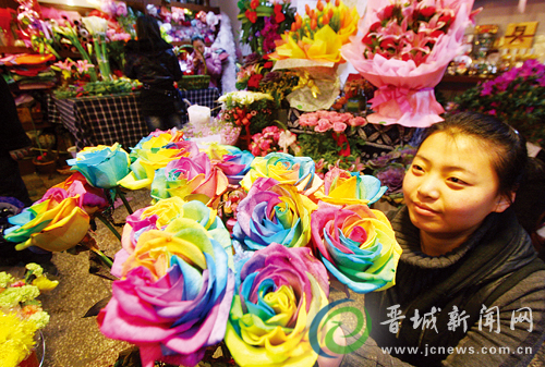 這就是300元的七彩玫瑰。記者焦宇 攝