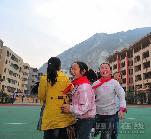 4月底,陽光明媚,空氣里透著暖意,老張帶著2歲半的孫女在陽光花園的新家院子里滑滑梯。地震后2年,800多戶汶川人搬進了這個小區,房子比以前更漂亮了,小區比以前更美了。