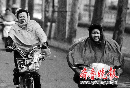 26日下午5時左右,濟南市狂風大作,路人們在大風中艱難前行。 本報記者 周青先 攝