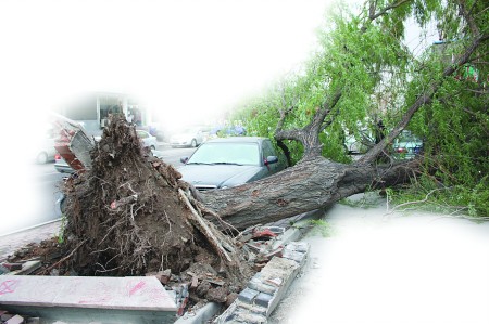 26日傍晚,陸續響起的熱線電話中,反映大樹倒了砸車砸房的占到了一半。市民反映,北至標山路北口往東、清河路南,十幾棵樹被狂風刮倒;南到建設路海鮮市場東門口,以及玉函北區,都有大樹被刮倒砸中了居民的房屋;往東,在黃臺南路加氣站,直徑半米多的大樹狂風中搖晃了幾下后轟然倒下,連根拔起砸中三輛車;而西邊情況也不妙,張莊路附近一大樹同樣在風中傾倒。即便在市中心的泉城廣場,也有市民反映一家銀行附近的樹木,上邊折斷而下邊則連根拔起。
