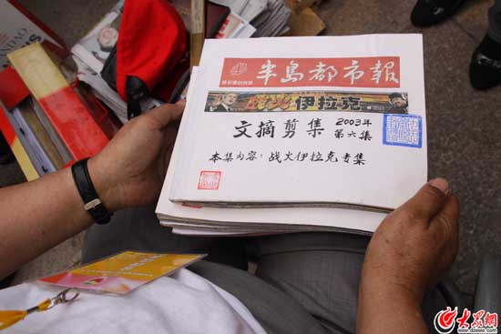 “現在你看到的這些剪報只是所有剪報的一部分,還有幾本被朋友借出去了。我不心疼,我最高興的就是大家都能看見這些剪報,能讓朋友通過《半島都市報》對青島有更深的認識。”馮作琪老人告訴記者,自己在整理2003年的《伊拉克戰爭專輯》時,由于有幾份報紙實在買不到,都是以10元/份的高價淘來的。