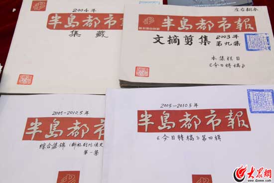 2002年的《新奇動植物專輯》、2003年的《伊拉克戰爭專輯》、2004年的《小說連載專輯》、今年的《猴專輯》……馮作琪老人對一本本剪裁精美、保存完整的剪報集如數家珍。“每天一份《半島都市報》,既能幫助久居青島的人回憶老青島,又能幫助初來青島的人了解新青島。”馮作琪告訴記者,十幾年來,《半島都市報》幾乎成了自己家中的一分子。吃飯前看新聞,午休后讀小說連載,晚上家人看電視時自己拿著放大鏡在《青島地理》板塊中找小時候熟悉的街道和建筑,這都成為了他的生活習慣。