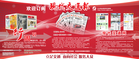 《現(xiàn)代交通報(bào)》是大眾報(bào)業(yè)集團(tuán)主辦,面向山東交通系統(tǒng)的一份行業(yè)機(jī)關(guān)報(bào),是省市縣各級(jí)交通系統(tǒng)領(lǐng)導(dǎo)干部必備的指導(dǎo)性讀物。《現(xiàn)代交通報(bào)》以“關(guān)注人車(chē)路 服務(wù)大交通”為理念,以服務(wù)于交通系統(tǒng)廣大干部職工為辦報(bào)宗旨,融新聞性、政治性、知識(shí)性、實(shí)用性為一體,在宣傳黨和政府在交通領(lǐng)域的大政方針,反應(yīng)交通系統(tǒng)基層工作,描繪交通人喜怒哀樂(lè),為社會(huì)大眾提供實(shí)用的交通信息等方面具有獨(dú)特的優(yōu)勢(shì)。