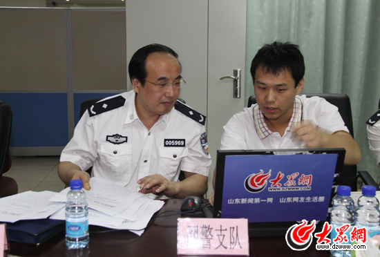 濟南市網警支隊支隊長逄建(左)回答網友提問