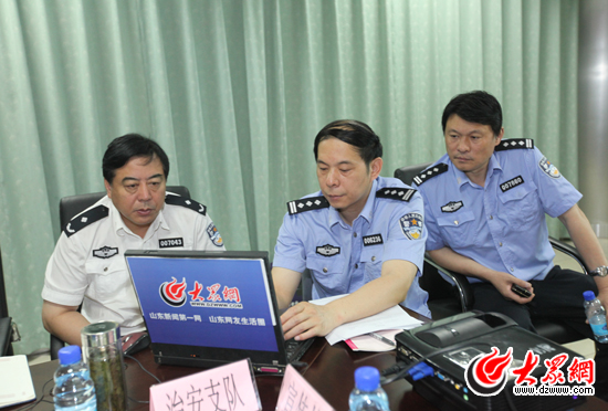 濟南市治安支隊支隊長王建華(左一)在線回答網(wǎng)友問題
