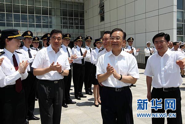 8月21日,溫家寶來到深圳灣口岸的口岸監(jiān)控中心,了解口岸通關(guān)情況,看望口岸監(jiān)管人員。新華社記者 劉衛(wèi)兵 攝
