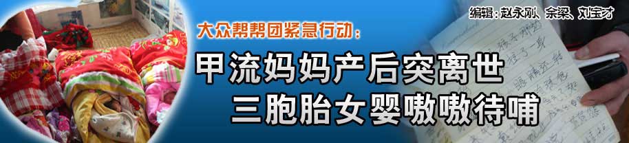 2009年12月28日,剛生完孩子6天的楊翠翠因感染重癥甲型H1N1流感而死亡,留下了新婚一年的丈夫和剛出生的三胞胎女兒。“給孩子們起名字了嗎?孩子們健康嗎?我想喂她們奶!”想起妻子生前渴望的眼神和溫柔的語氣,看著與妻子交流的寫字板上的筆跡,耳邊回響起妻子最后對他的囑托,這個29歲的山東大漢禁不住聲淚俱下。