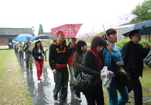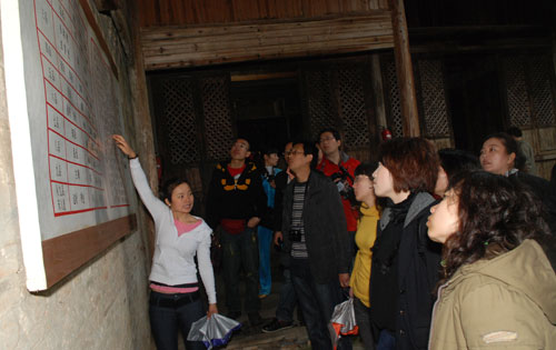 全國網(wǎng)媒記者走進(jìn)浮梁古縣衙。圖為記者團(tuán)正在聽導(dǎo)游講解