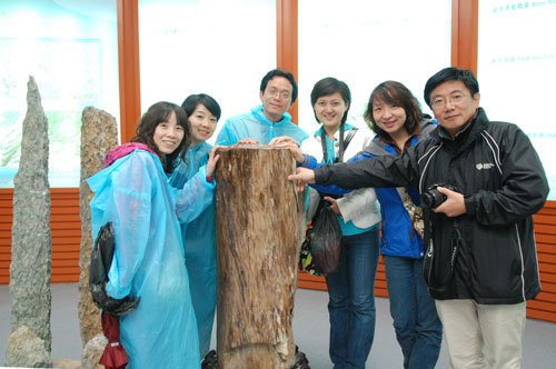 網媒記者們在地質博物館內合影留念。