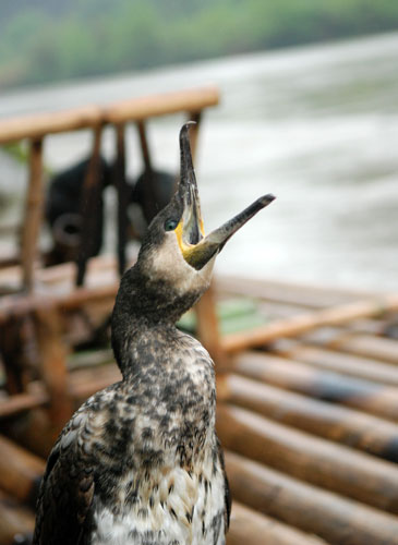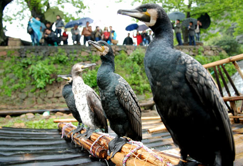 “這些鸕鶿真是太可愛了”,來自南海網(wǎng)的女記者彭琳沁看見鸕鶿不禁發(fā)出如此感嘆。它們乖巧的外表,靚麗的羽毛引得大家紛紛向前與之合影留念,只見別名魚鷹的鸕鶿排著整齊的隊列站在竹筏上“接受”著記者們相機的“檢閱”,時而看看這邊,時而看看那邊,似乎正享受著“當明星”的滋味,又好似在盡地主之誼。