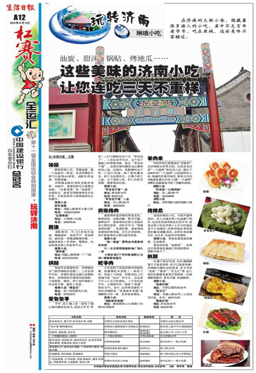 生活日報 《玩轉濟南》專題報道 (記者:殷寶龍、秦娟、王蕾、郭學軍、李麗、尹玉濤、趙國陸  編輯:李可可、金中麗、彭茜)