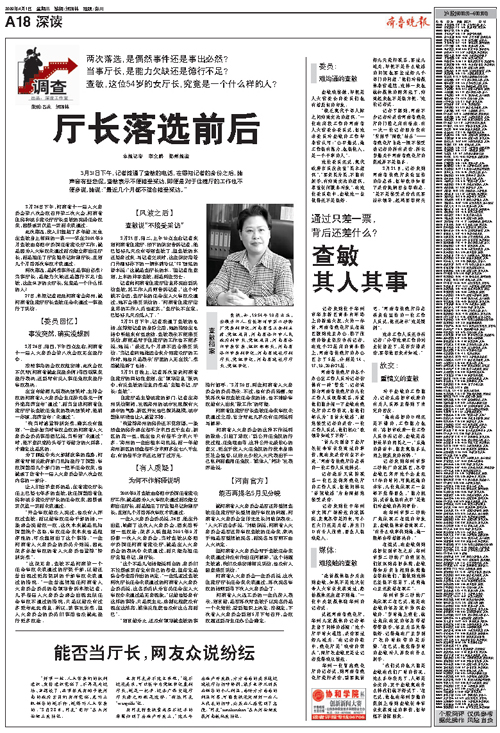 《廳長落選前后》 (齊魯晚報記者:李文鵬、劉國林 齊魯晚報編輯:劉國林、呂冰)