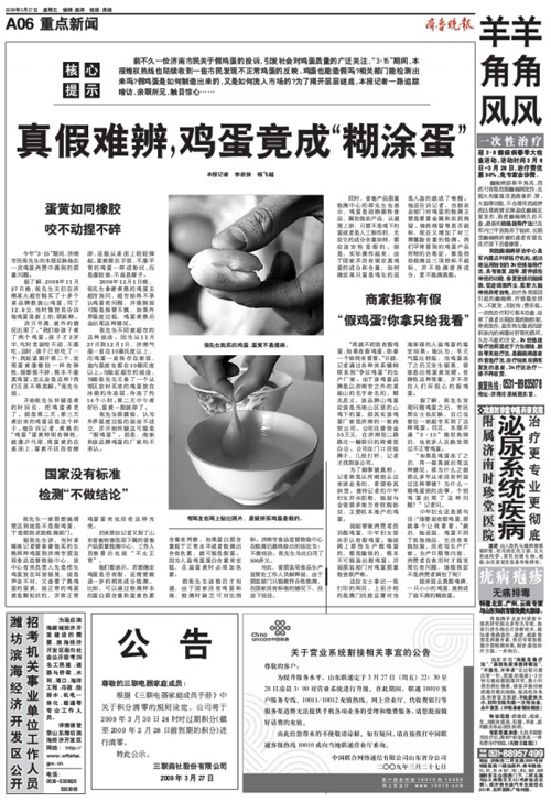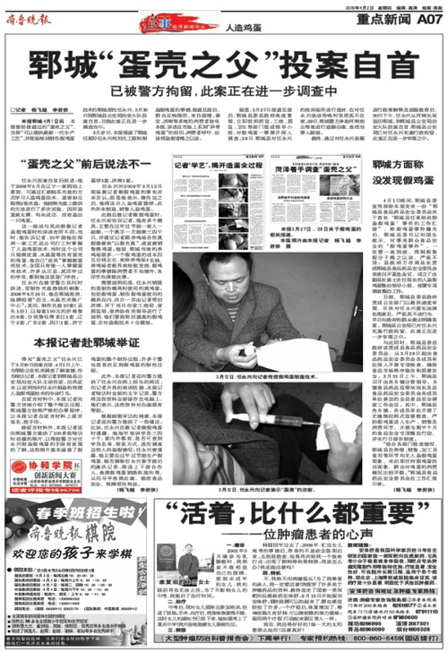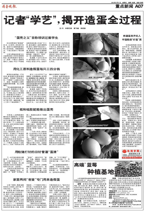 《真假難辨,雞蛋變成糊涂蛋 記者“學藝”,揭開造蛋全過程》  (齊魯晚報記者:李巖俠、楊飛越  齊魯晚報編輯:溫濤)