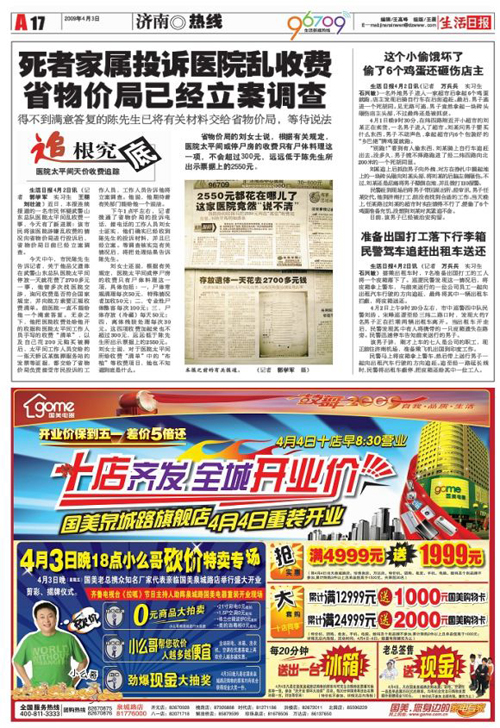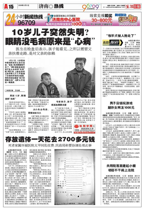 《武警山東總隊醫院太平間亂收費》系列報道 (生活日報記者:郭學軍 生活日報編輯:王高峰、喬永華、閆明)