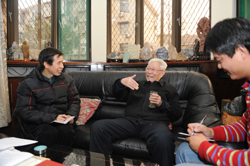 生活日報記者郭學軍和同事一起采訪蘇毅然
