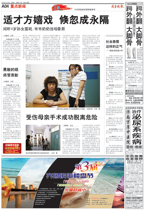 《48歲的姐舍命逼停肇事車》 (齊魯晚報記者:劉振澤、王恒 齊魯晚報編輯:王德高、嚴潔)