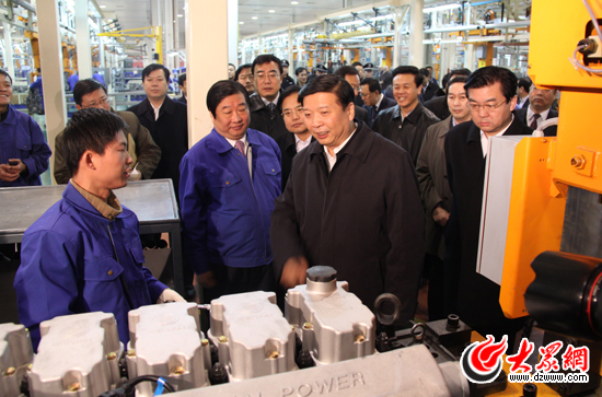 省委副書記、省長姜大明在山東重工旗下的濰柴動力新區二號工廠考察。